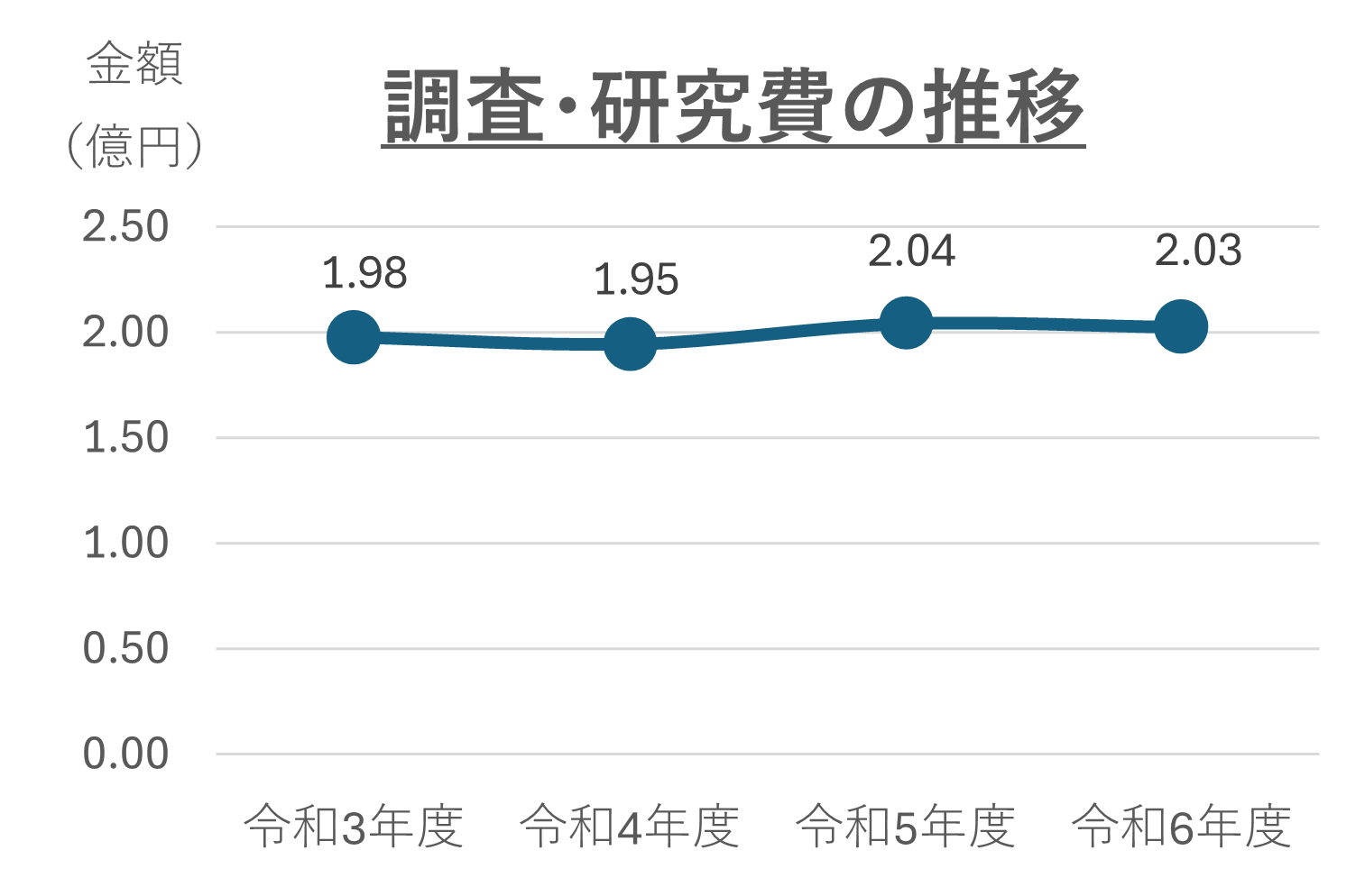 令和3年度から始まった技術開発推進計画2021計画期間における調査・研究費は下のグラフのとおりです。