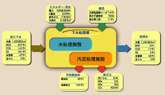下水処理場における物質フロー
