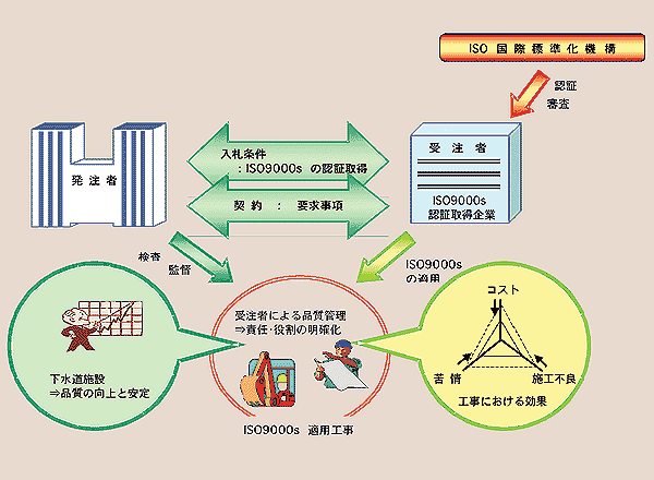従来、発注者が行っていた工事の品質管理を受注者の品質マネジメントシステムに任せることで、